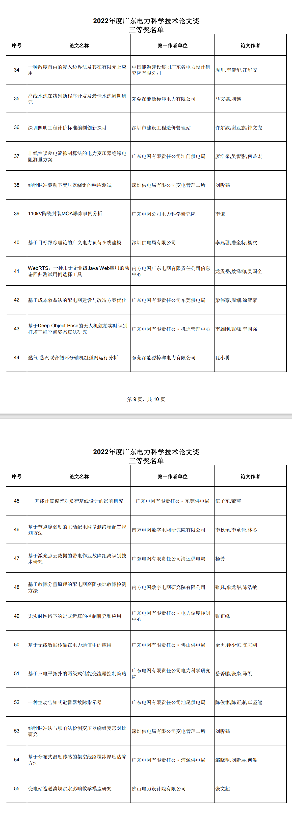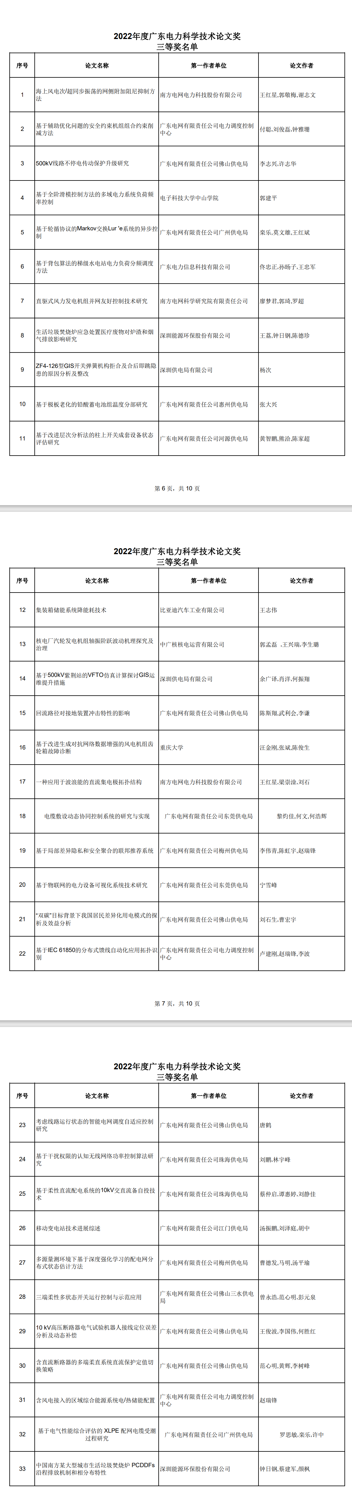 2022年度广东电力科学技术论文奖一等奖