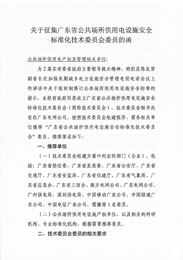 关于征集广东省公共场所供用电设施安全标准化技术委员会委员的函_通知公告_广东省电机工程学会