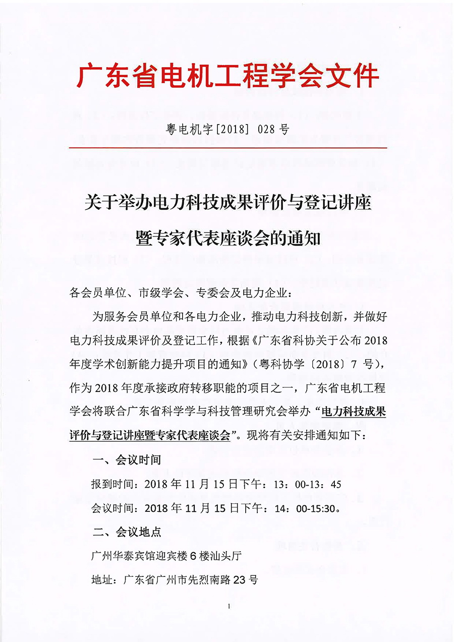关于举办电力科技成果评价与登记讲座暨专家代表座谈会的通知_通知公告_广东省电机工程学会