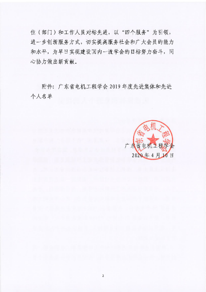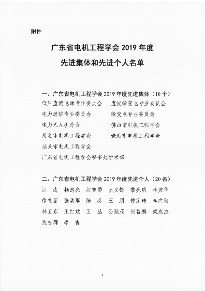 附件: 广东省电机工程学会2019年度先进集体和先进个人名单